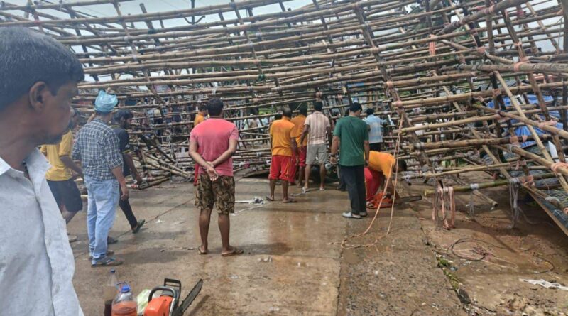 Read Moreବାଲିକୁଦା ବସ୍ ଷ୍ଟାଣ୍ଡ ପୂଜା ମଣ୍ଡପର ମୁଖ୍ୟ ପେଣ୍ଡାଲ ଭାଙ୍ଗି ଯାଇଛି। ଲଘୁଚାପ ପ୍ରଭାବରେ ହୋଇଥିବା ପବନ ଏବଂ ବର୍ଷାରେ ପେଣ୍ଡାଲ ଭାଙ୍ଗି ମୁଖ୍ୟ ରାସ୍ତା ଉପରେ